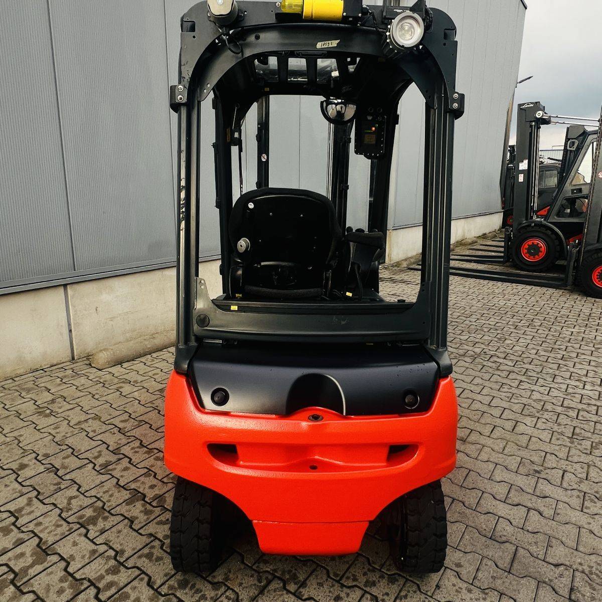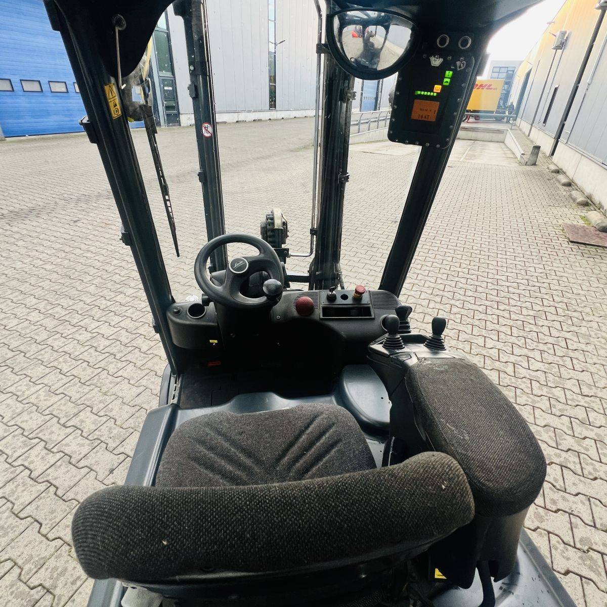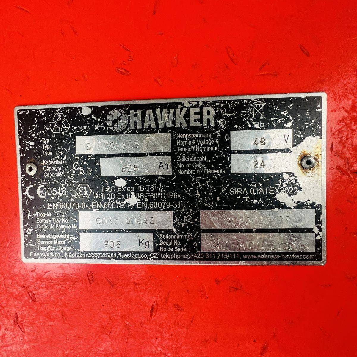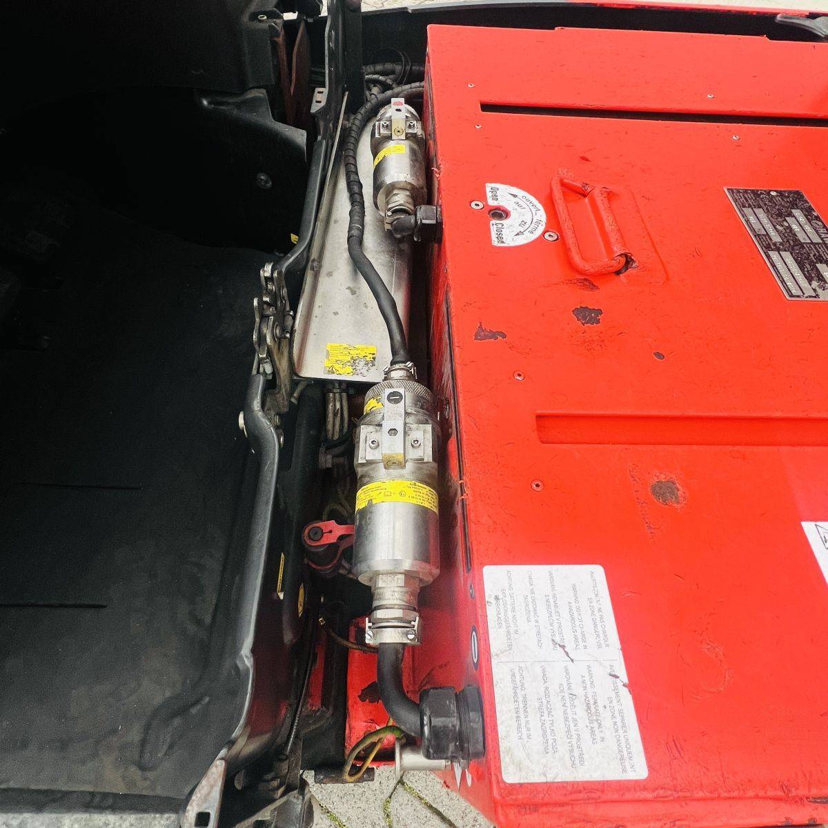 Zone 1 (2G) ATEX-Explosionsgeschützt. PROPLAN (offiziell Linde). Duplex-Voll-Freihub Mast, 3. Ventil, integrierter Seitenschieber, bronzebeschichtete Gabeln 1.000 mm. Fahrerkabine: Einpedal-anordnung, Frontscheibe mit manuellem Scheibenwischer, Dachscheibe, Arbeitsscheinwerfer, Blitzlicht, akustisches Signal, Komfortsitz mit neuen antistatischem Kissen. Batterie: Hawker Ex 5PzS 625 Ah (2016), ohne Ladegerät. Spezielle antistatische Continental-Reifen vorne und hinten, neue antistatische Heckabdeckung. Optional: Lieferung mit einem Triplex-/3-stufigem Mast möglich: 3.000 € Aufpreis.