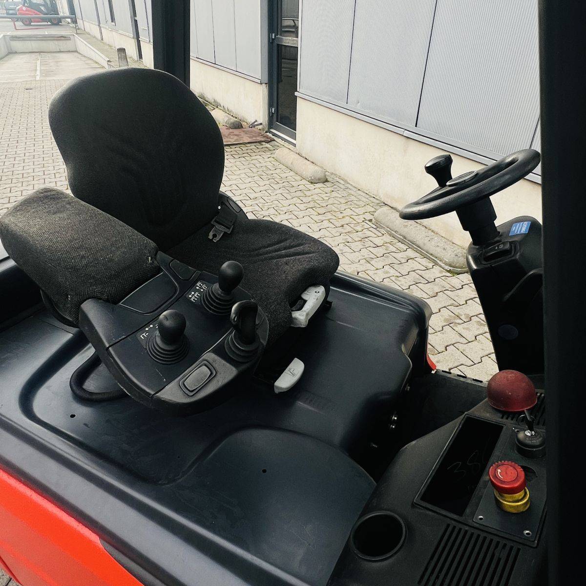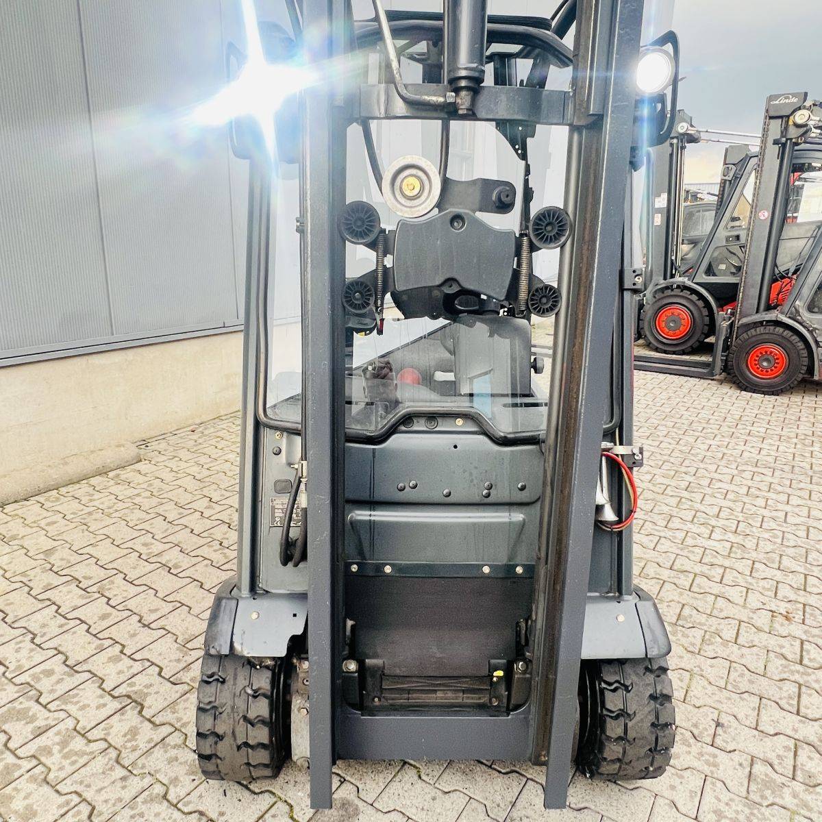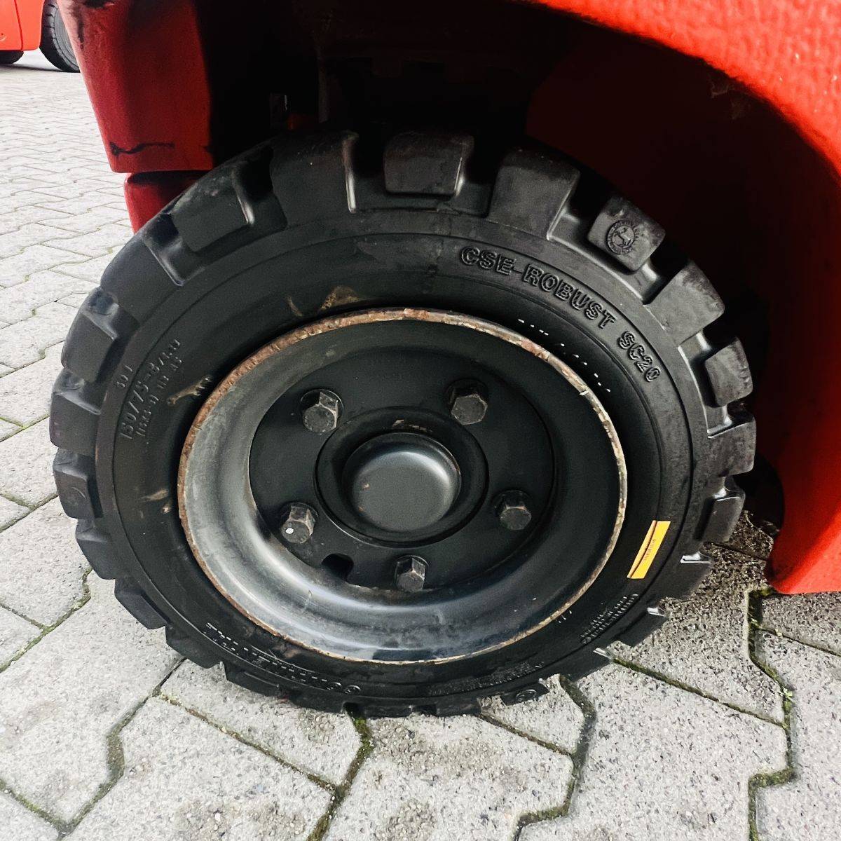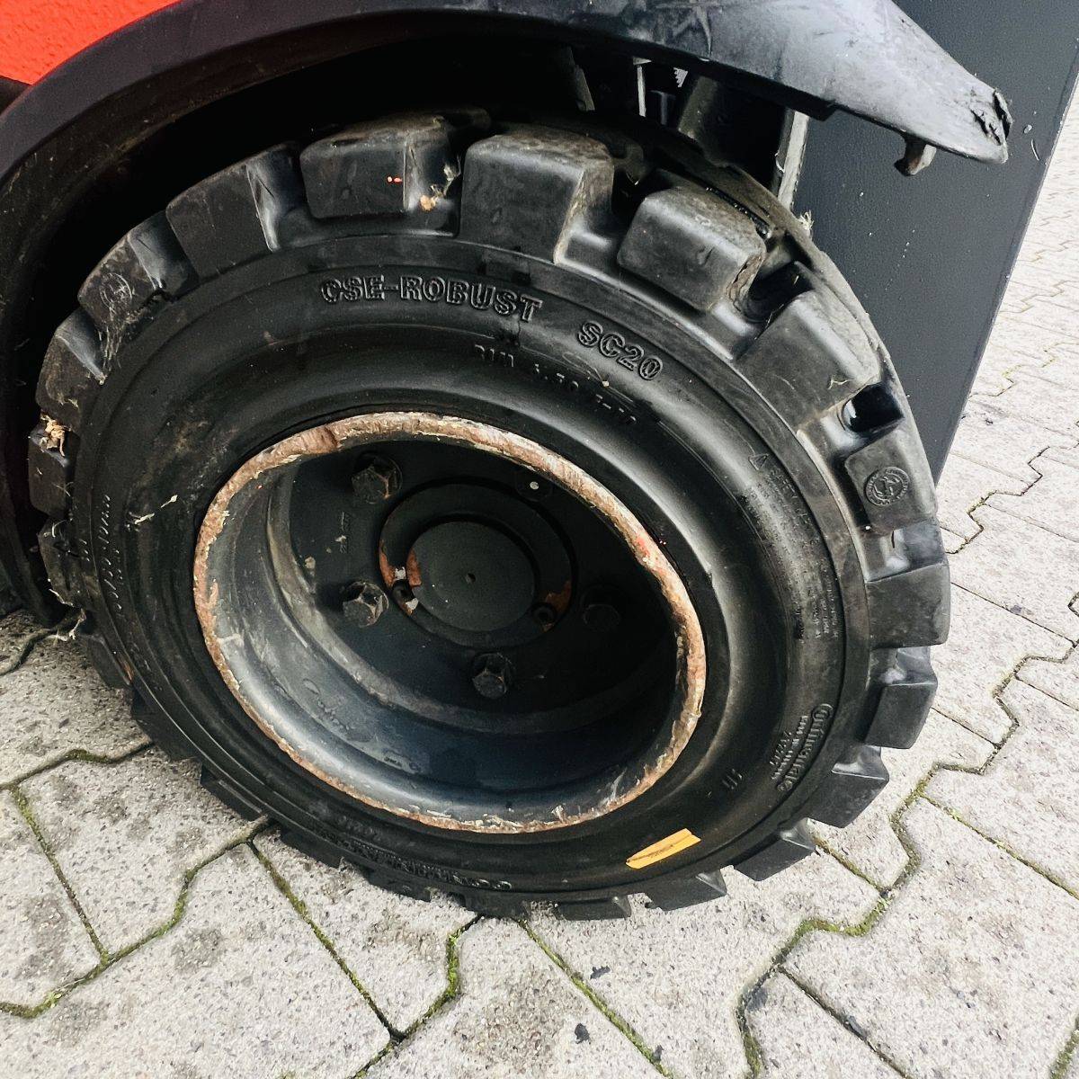 Zone 1 (2G) ATEX-Explosionsgeschützt. PROPLAN (offiziell Linde). Duplex-Voll-Freihub Mast, 3. Ventil, integrierter Seitenschieber, bronzebeschichtete Gabeln 1.000 mm. Fahrerkabine: Einpedal-anordnung, Frontscheibe mit manuellem Scheibenwischer, Dachscheibe, Arbeitsscheinwerfer, Blitzlicht, akustisches Signal, Komfortsitz mit neuen antistatischem Kissen. Batterie: Hawker Ex 5PzS 625 Ah (2016), ohne Ladegerät. Spezielle antistatische Continental-Reifen vorne und hinten, neue antistatische Heckabdeckung. Optional: Lieferung mit einem Triplex-/3-stufigem Mast möglich: 3.000 € Aufpreis.