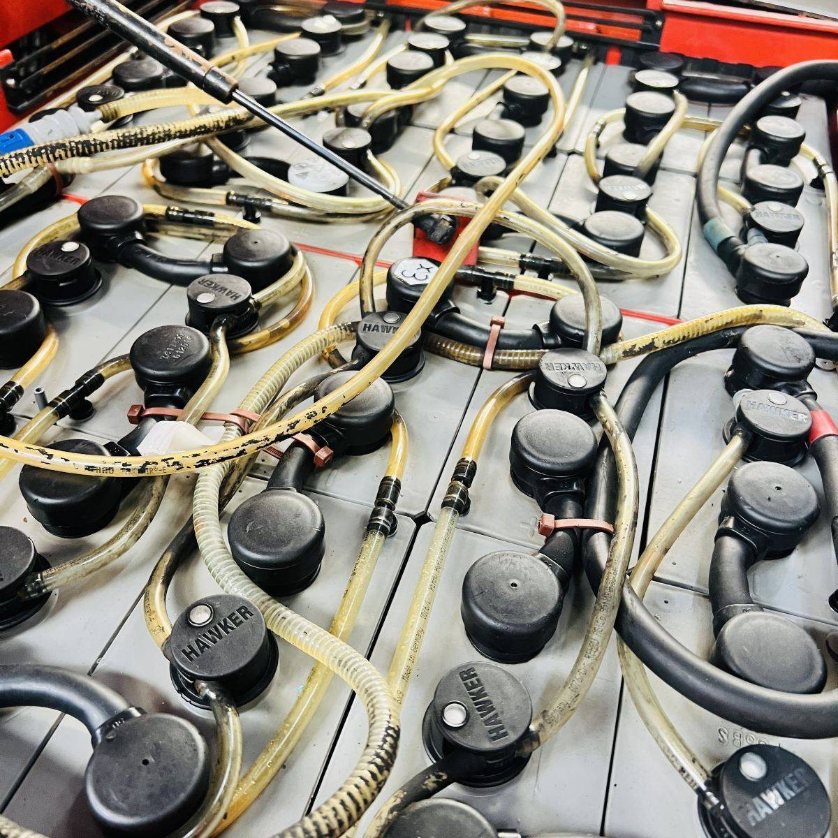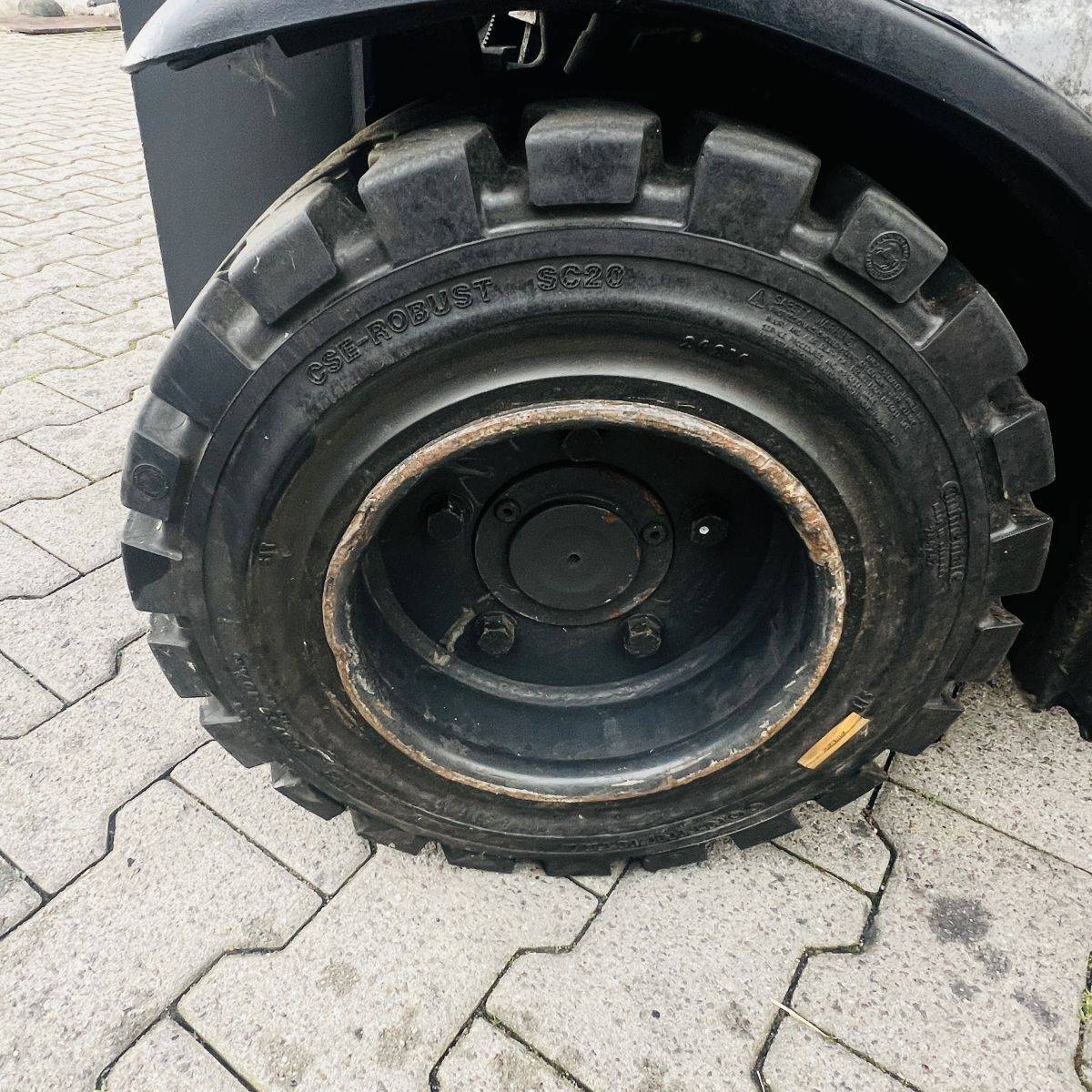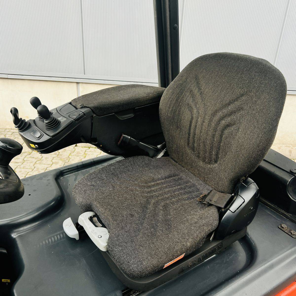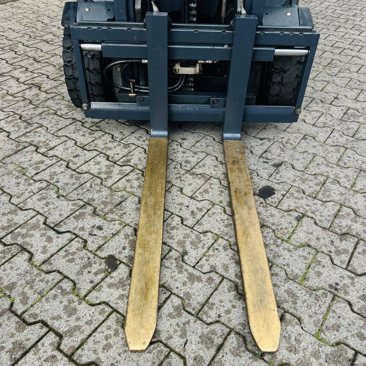 Zone 1 (2G) ATEX-Explosionsgeschützt. PROPLAN (offiziell Linde). Duplex-Voll-Freihub Mast, 3. Ventil, integrierter Seitenschieber, bronzebeschichtete Gabeln 1.000 mm. Fahrerkabine: Einpedal-anordnung, Frontscheibe mit manuellem Scheibenwischer, Dachscheibe, Arbeitsscheinwerfer, Blitzlicht, akustisches Signal, Komfortsitz mit neuen antistatischem Kissen. Batterie: Hawker Ex 5PzS 625 Ah (2016), ohne Ladegerät. Spezielle antistatische Continental-Reifen vorne und hinten, neue antistatische Heckabdeckung. Optional: Lieferung mit einem Triplex-/3-stufigem Mast möglich: 3.000 € Aufpreis.