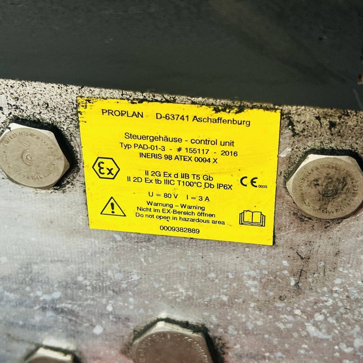 Zone1 (2G) ATEX Flameproof . PROPLAN (official Linde). Mast Duplex FFL, 3rd valve, integral sideshift, forks bronze plated 1.000 mm. Operator compartment: 1 pedal operation, frontscreen with manual wiper, topscreen, working lights, flashlight, acoustic signal, comfort seat with new antistatic seat cushion. Battery: Hawker Flameproof 5PzS 625 Ah (2016), no charger. Special Continental Anti-Static tyres front and rear, new antistatic rear cover. Optional: if supplied with triplex / 3-stage mast € 3.000 add on price.